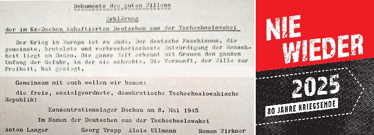 Mit der „Erklärung der im KZ Dachau inhaftierten Deutschen aus der Tschechoslowakei“, einem „Dokument des guten Willens“ haben die sudetendeutschen Sozialdemokraten, vertreten durch Anton Langer, Georg Hans Trapp, Alois Ullmann und Roman Wirkner manifestiert, dass die Überlebenden nach dem Krieg mit der Hoffnung auf den gemeinsamen Wiederaufbau eines demokratischen tschechoslowakischen Staates aus dem Exil, dem Untergrund oder den Lagern zurückkehren.