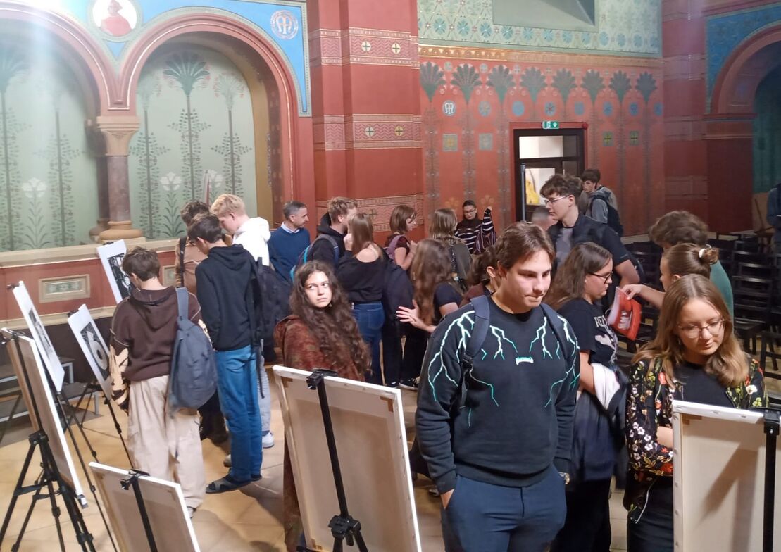 Nachdem bereits im April 2022 die Seliger-Gemeinde mit Thomas Oellermann, Historiker und Präsidiumsmitglied, die Ausstellung „Böhmen liegt nicht am Meer – Lebenswege sudetendeutscher Sozialdemokraten“ am Gymnasium in Teplitz/Teplice zeigen konnte, freute es die Verantwortlichen, dass auch die Ausstellung „GHT – frühe Werke von Georg Hans Trapp des Zeichners von Flossenbürg“ im Vortragssaal des Gymnasiums in dieser Woche präsentiert werden konnte. Auch hierzu erhielten die Oberstufenschülerinnen und -schüler eine historische Einführung in das Zeitgeschehen und die Person Georg Hans Trapp durch Thomas Oellermann.